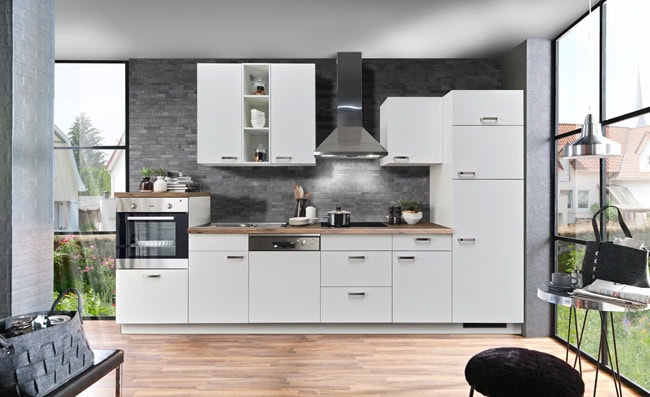 Természetesen ez a konyha szabadon konfigurálható, ha az Ön számára nem megfelelő. Emellett különféle felszereltségi csomagokat, megfelelő kiegészítőket, valamint az Ön számára megfelelő elektromos készülékeket is kínálhatunk. Tapasztalt csapatunk szívesen nyújt tanácsot. Használja ki a tapasztalatainkat, és engedje, hogy konyháját az Ön személyes pihenőhelyévé varázsoljuk.