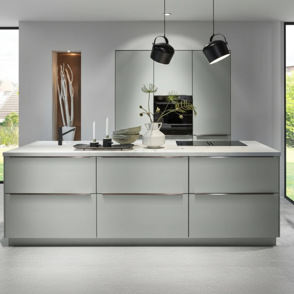 Természetesen ez a konyha szabadon konfigurálható, ha nem passzolna. Ezenkívül számos felszerelési csomagot, megfelelő kiegészítőket és háztartási készülékeket ajánlhatunk. Tapasztalt csapatunk készséggel ad tanácsot önnek. Profitáljon tapasztalatainkból, és hagyja, hogy konyháját személyes jólét helyévé tegyük.