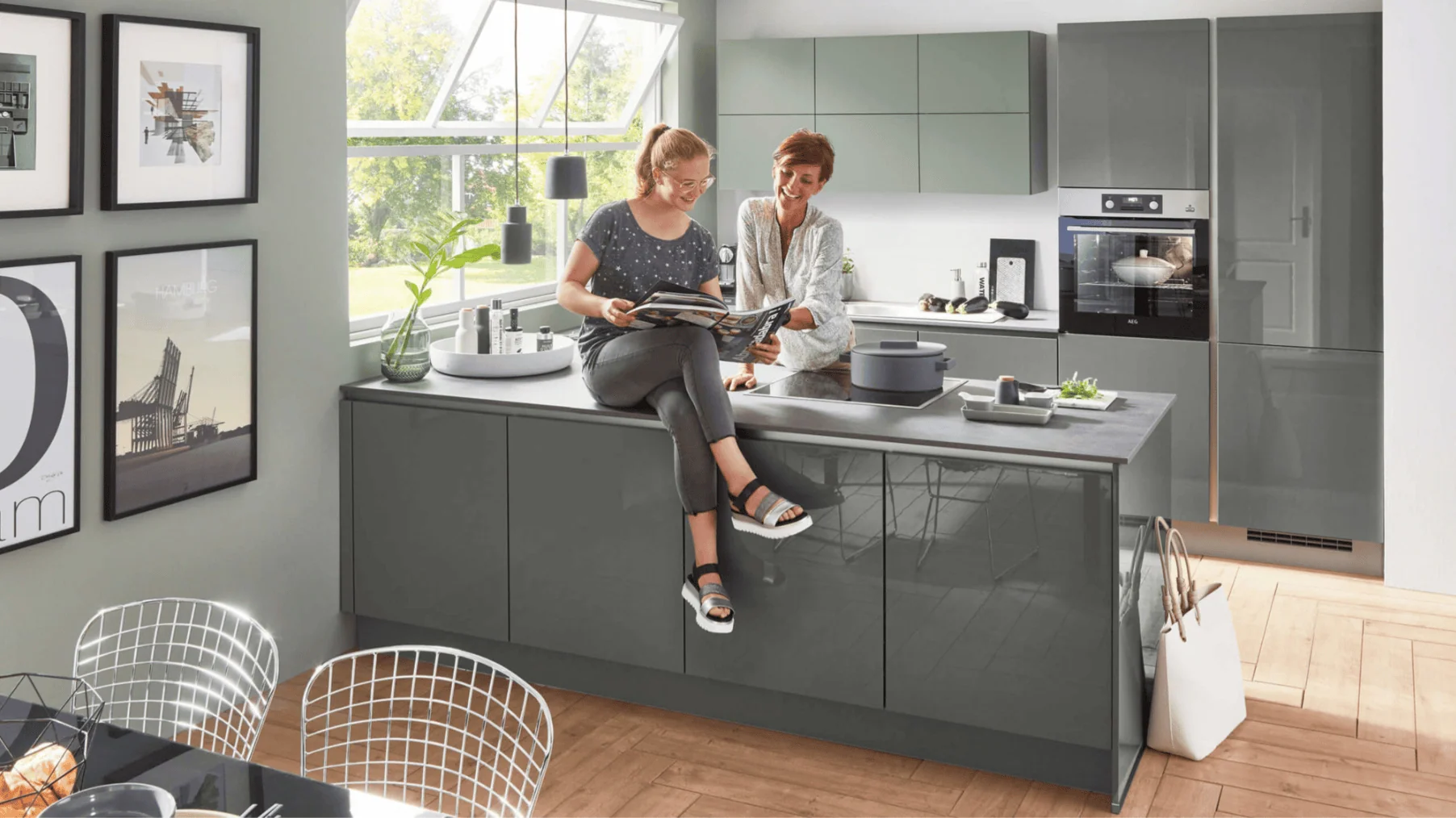 Részletek egy pillantásra• beleértve a főzőlap szívóegységetAnyag és szín• Előlapi elnevezés: Flash lakk laminátum, pala szürke magasfényű, szegély megegyező