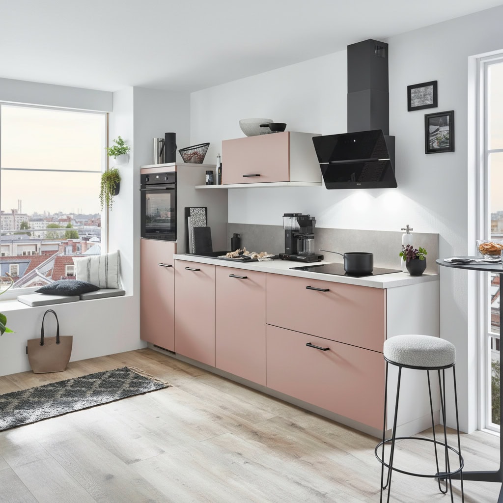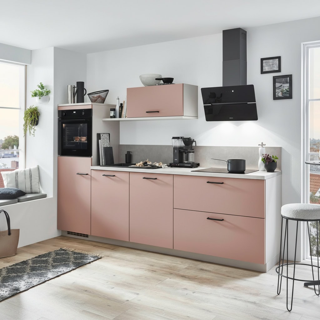 Diese verspielte Küchenzeile in Koralle bereitet immer wieder gute Laune und ist ein echter Eecatcher.